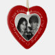 This romantic red and white ornament lets you add your own photo to the heart-shape cutout. Create a special keepsake for your loved one to celebrate a long and happy marriage. The red heart frame has white script text that says '35th Wedding Anniversary' across the top, and '35 years of love', '35 years of joy' along each side. Pretty scrolls and a love heart complete the design, and the couple's photo is framed by a white bead effect border. Add a personal message to the back to create a unique and special memory. You can also add the year or a date if you wish.