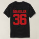 My 11 yo wore adult XL (5’7” 165#). The 8yo is small framed. She wore adult small and tied it in the back. Grandma wore adult large with long sleeve shirt underneath. Tall girl adult medium. Dark haired male adult large. Good quality dark Heather gray, Gildan brand shirt. -it was next up from basic choice and cost about $20 per shirt. Not too thick or thin. Washed and dried well, no major shrinkage. Not see-through. Can wear a bra under it fine. Screen print is just as shown and well done, front and back.