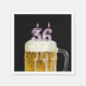 Lit birthday candles in mug of beer on black for 36th birthday.