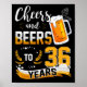 36th Birthday Party Cheers And Beers To 36 Years Poster