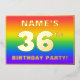 The front of this vibrant and fun thirty-sixth birthday celebration foil invitation card design features a custom name, a large number “36th”, the message “BIRTHDAY PARTY!”, and a border. The background of the front features a joyful, colorful, rainbow spectrum inspired gradient pattern. The back features personalized details about the event, such as the date, time, location/venue, and any other relevant information. Customized invitations like these might be a fun way to invite attendees/guests to a birthday gathering being held to celebrate somebody’s 36th birthday. [~Z0000599]