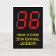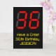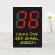 The front of this fun and silly birthday-themed greeting card design features a large number "36" with a red seven segment digital display style appearance, along with the message "Have a Great 36th Birthday," and a customizable name, on a black colored background. The inside features a customizable birthday greeting message, or could perhaps be cleared and left blank if a message is to be written by hand instead. A customizable birthday card like this might be a fun way to send birthday wishes to somebody who is celebrating their thirty sixth birthday. [~Z0000386]
