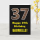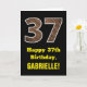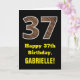 37th Birthday: Name, Faux Wood Grain Pattern "37" Card