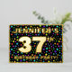 The front of this joyful and exciting thirty-seventh birthday celebration/party foil invitation card design features a customizable name, a large number “37th”, the message “BIRTHDAY PARTY!”, and a border. The background of the front features an upbeat, colorful starfield pattern. The back features personalized details about the event, such as the date, time, location/venue, and any other useful information. Personalized invitations like these might be a fun way to invite attendees/guests to a birthday gathering being held to honor somebody’s 37th birthday. [~Z0000600]