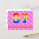 The front of this happy, cheerful, and upbeat birthday postcard design features a large number "37" having a rainbow spectrum gradient inspired pattern. It also features the message "Happy 37th Birthday,", and a customizable recipient name. The front additionally features a happy light pink and dark pink heart shapes and stripes pattern. The back features a customized birthday greeting message, or could perhaps be cleared and left blank if a message is to be written by hand instead. A personalized birthday postcard like this might be a fun way to send a message celebrating somebody’s thirty seventh birthday. Postcards like this might also be used to invite guests to a birthday party or celebration being held for somebody who is turning 37 years old. [~Z0000449]