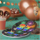 This fun, cheerful, and colorful paper plate design features a large number "37" having a rainbow spectrum gradient inspired pattern coloring. It also features a exciting and vibrant bursting celebratory fireworks inspired pattern. It has a black colored background. Paper plates like this might be fun to use at a party being held to celebrate somebody’s 37th birthday, a thirty seventh anniversary, or some other 37th event. [~Z0000490]