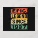 38 Years Old Bday 1987 Epic Legend 38th Birthday Postcard