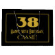 This vintage appearance Roaring Twenties look inspired birthday-themed giftbag design features a large art deco style inspired number "38", the message "Happy 38th Birthday,", an editable name, and a border pattern consisting of thin lines. It has a black-colored background. A gift bag like this may be used when wrapping a birthday present or gift being given to somebody who is celebrating their thirty eighth birthday. [~Z0000501]