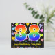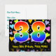 The front of this exciting, colorful, and loving birthday-themed postcard design features a large number "38" with a rainbow spectrum gradient inspired pattern, along with the message "Happy 38th Birthday,", and a customizable recipient name. The front additionally has a vibrant and colorful loving hearts background pattern. The back features a personalized birthday greeting message, or could perhaps be cleared and left blank if a message is to be written by hand instead. A customizable birthday postcard like this might be a fun way to send a message celebrating somebody’s thirty eighth birthday. Postcards like this might also be used to invite guests to a birthday party being held for somebody who is turning 38 years old. [~Z0000448]