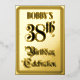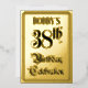 The front of this opulent and elegant thirty-eighth birthday party/celebration foil invitation card design features the message “38th Birthday Celebration” in luxurious script-style text. It also features a customizable name. The back features personalized details about the event, such as the date, time, place, and any other relevant information. Ornate, elaborate, customizable invitations like these might be used to invite guests to a birthday celebration/party being held in celebration of somebody’s 38th birthday. [~Z0000596]