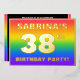 The front of this eye-catching thirty-eighth birthday celebration/party foil invitation card design features a personalized name, a large number “38th”, the message “BIRTHDAY PARTY!”, and a border. The background of the front has a vibrant, multicolored, rainbow spectrum inspired gradient pattern. The back features personalized details about the event, such as the date, time, place/venue, and any other relevant information. Personalized invitations like these might be a fun way to invite attendees to a birthday party/gathering being held to honor somebody’s 38th birthday. [~Z0000599]