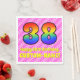 This happy and upbeat 38th birthday themed paper napkin design features a large number "38" having a colorful rainbow spectrum inspired gradient pattern. It also features the message "Happy 38th Birthday,", and a customizable name. The background features a cheerful pattern of dark pink and light pink stripes containing loving pink heart shapes. Birthday themed paper napkins like this might be fun to use at a celebration being held to honor somebody who is celebrating their thirty eighth birthday. [~Z0000417]