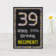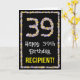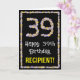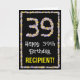 39th Birthday: Floral Flowers Number, Custom Name Card