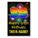The front of this joyful, colorful, and cheerful birthday greeting card design features a large number “39” having a rainbow spectrum gradient inspired pattern. It also features the message “Happy 39th Birthday,”, and a personalized recipient name. The front additionally has a colorful background pattern inspired by the appearance of bursting celebratory fireworks. The inside features an editable birthday greeting message, or could perhaps be cleared and left blank if a message is to be written by hand instead. A customizable birthday card like this might be a fun way to send a message celebrating somebody’s thirty ninth birthday. [~Z0000526]