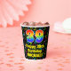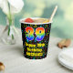 This cheerful and exciting music-themed birthday paper cup design features a large number “39” having a rainbow spectrum gradient inspired pattern. It also features the message “Happy 39th Birthday,”, and a customizable name. The background features a multicolored pattern having music notes and symbols of various colors and sizes. Vibrant, colorful paper cups like this might be fun to use at a birthday party/celebration being held in celebration of somebody’s thirty ninth birthday. [~Z0000541]