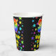 This joyful and fun birthday-themed paper cup design features a large number “39” with a rainbow spectrum gradient inspired pattern, along with the message “Happy 39th Birthday,”, and a customizable name. The background features a colorful pattern featuring many star shapes with different colors and sizes. Colorful, vibrant paper cups like this might be fun to have at a birthday party being held to honor somebody’s 39th birthday. [~Z0000540]