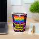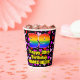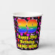 This colorful and fun birthday themed paper cup design features a large number “39” having a rainbow spectrum gradient inspired pattern. It also features the message “Happy 39th Birthday,”, and a personalized name. The background features a pattern of red, pink, and purple heart shapes. Happy, friendly paper cups like this might be fun to have at a birthday party being held in celebration of somebody’s thirty ninth birthday. [~Z0000548]