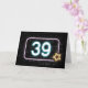 Glowing neon sign with a star on a dark brick city wall for 39th birthday.