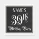 This luxurious and opulent birthday paper napkin design features an editable name and the message “39th Birthday Party”. The large number “39th” and the words “Birthday Party” are in ornate script-style text, and the background is colored black by default (although it can be customized). Ornate, opulent paper napkins like this might be useful to have at a birthday celebration being held in celebration of somebody’s 39th birthday. [~Z0000563]