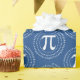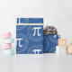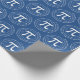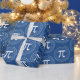 These blue and white Pi Day gift wrapping paper features a 3.14 spiral Pi number and a Pi symbol pattern. The background color is easy to customize inside the design tool.