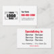 Do you have a logo for your small business and want to add it to your business cards? Then the 3.5" x 2" double-sided black and red business card is for you! This business card is part of a full "Your Logo Here," branding package, with matching yard signs, car magnets, t-shirts, and more for your small business. This business card is fully customizable, from the text, colors, and background. You can even add a hi-res JPEG of your logo in the .75" x 1.25" placeholder image provided. Contact me for further design help. Discounts begin when you buy 2 packs of 100 cards or more.