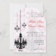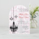 3 Black Chandeliers Shadow Pink Damask Wedding Invitation