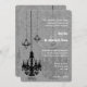 3 Black Chandeliers Shadow Silver Metallic Damask Invitation