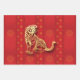 Chinese traditional golden tiger paper-cut and golden "Year of The Tiger" in hand writing style. Design on wrapping paper flat sheet set of 3 with red and black colors background. You can easily change background color by clicking the customize button.. ----- "The Tiger (寅) is one of the 12-year cycle of animals which appear in the Chinese zodiac related to the Chinese calendar. The Year of the Tiger is associated with the Earthly Branch symbol 寅. (...) People born within these date ranges can be said to have been born in the "Year of the Tiger", while also bearing the following elemental sign: