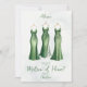 Glam 3 Chic Green Shades Matron of Honor and Bridesmaid Dresses Watercolor Request Card.