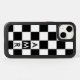 Protect your smartphone with a protective case featuring a bold black and white checkerboard pattern with a customizable monogram. Add 3 initials or numbers in the sidebar to personalize it. The cool geometric pattern is made of rows of alternating white and black squares.