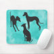 A PawsInProfile Three Italian Greyhound Silhouette design on a blue background.