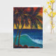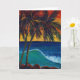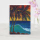 Small acrylic painting of three palms at sunset with a small wave. Accents warm evening colors. Painted 2013 by artist Suzanne D. MacAdam, in Puna Hawaii.