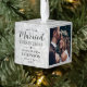 3 Photo 1st Married Christmas Elegant Faux Marble Cube Ornament
