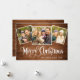 3 PHOTO Christmas Rustic Brown Wood Greeting Holiday Card