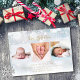 Share the joy of your baby's first Christmas with these elegant holiday birth announcement cards. Personalise the message, 3 baby photos, baby name, birth stats, and holiday message on a winter frost background. Designed by Thisisnotme©