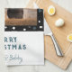 3 Photo Collage Modern Black White Blue Christmas Kitchen Towel