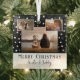3 Photo Collage Modern Black White Christmas Glass Ornament