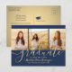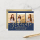 3 Photo Collage Script Navy Blue & Gold Graduation Announcement Postcard