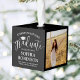 Commemorate the graduate's achievement with a custom 3 photo graduation cube Christmas ornament. Pictures and wording on this template are simple to customize. (IMAGE PLACEMENT TIP: An easy way to center a photo exactly how you want is to crop it before uploading to the Zazzle website.) Include any favorite inspirational quote, motivational saying, school name and degree, congratulations, thanks mom and dad, or other message of your choice. The black and white design features a cute mortar board cap, elegant handwritten style script calligraphy, stylish modern minimalist typography, and two photos of your choice, such as senior pictures or images from the commencement ceremony. Makes a thoughtful keepsake graduation gift idea. Congratulations to the graduate!