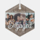 3 Photo First Christmas Engaged Rustic Faux Wood Glass Ornament