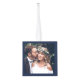Celebrate a joyful 1st holiday as newlyweds with a custom 3 photo collage "Our First Married Christmas" navy blue and white cube ornament. All wording and pictures on this template are simple to personalize. (IMAGE PLACEMENT TIP: An easy way to center a photo exactly how you want is to crop it before uploading to the Zazzle website.) The navy blue and white design features modern handwritten style script calligraphy, elegant typography names & year, and three pictures of your choice. This unique wedding keepsake adds a stylish touch to the newlywed couple's Xmas home decorations. Merry Christmas & Congratulations to the new Mr. & Mrs.!
