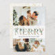 3 Photo Gold & Greenery Botanical Merry Christmas Holiday Card