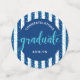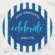 Add some extra style to your favorite grad’s celebration party with this customizable table confetti! On one side, stunning, modern, sparkly turquoise glitter calligraphy script and confetti dots overlay a dark navy blue and white striped background. 3 photos of your choice are on the back. Personalize the custom text with your grad’s name and class year. Matching invites, thank you cards, cap toppers, stickers, albums, and other graduation goodies are also available in this trendy and stylish collection. Guaranteed to add extra fun at their special celebration!