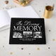 Elegant photo memorial funeral guest book features a stylish black background, 3 photos of your lost loved one, and a "in loving memory" text template that is easy to personalize.