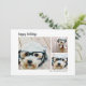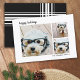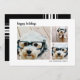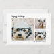 3 Photo Modern Minimal Script plaid - Black Holiday Card