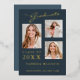 Beautifully elegant 3 photo graduation announcement cards. Featuring modern text with calligraphy script in your choice of gold, silver or rose foil. The design is complimented with a stylish dusty blue background on the front with a lighter shade on the back. The back of the card offers a personalized announcement text space for that special graduate. To see more items like this, visit my store here at "www.Zazzle.com/LakeViewCardCo". Thanks