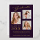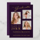 Beautifully elegant 3 photo graduation announcement cards. Featuring modern text with calligraphy script in your choice of gold, silver or rose foil. The design is complimented with a stylish purple background on the front with a lighter purple shade on the back. The back of the card offers a personalized announcement text space for that special graduate. To see more items like this, visit my store here at "www.Zazzle.com/LakeViewCardCo". Thanks