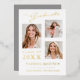 3 Photo Modern Script White Gold Grad Announcement