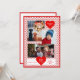 A great family themed card personalized with 3 of your family photos. Backed with a red heart pattern.accented with large red hearts holding further personalizations with family names, year, and "Happy Valentine's Day".