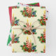 3 Pretty Christmas Santa Tree Candle Wrapping Paper Sheets